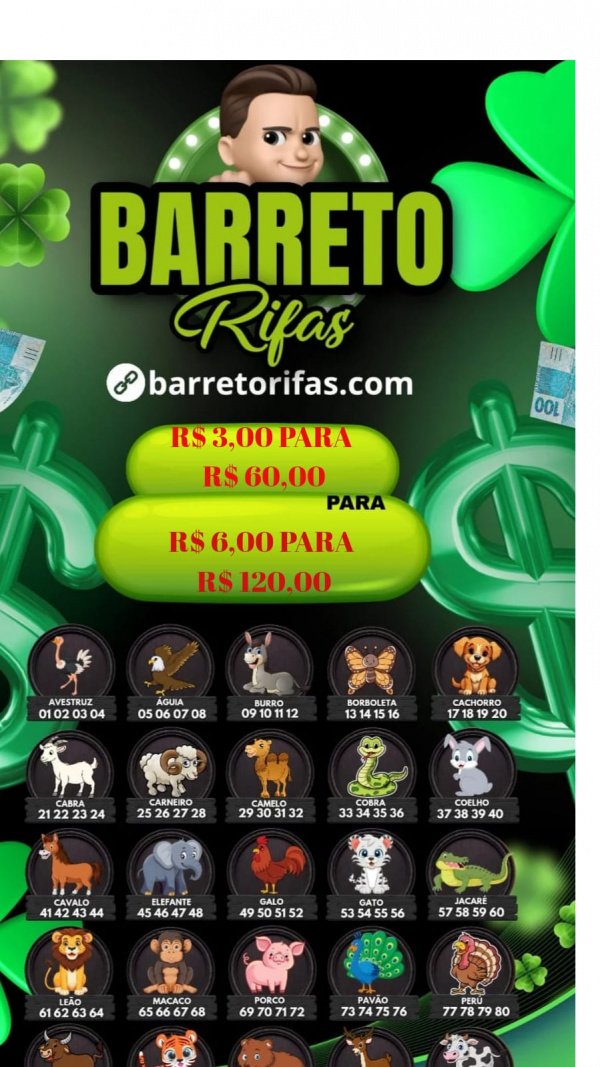 RIFA FAZENDINHA - R$ 3,00 PARA R$ 60,00 OU R$ 6,00 PARA R$ 120,00 RIFA PARA 12HRS EXTRAÇÃO BAHIA - VAI LÁ PEGA O SEU GRUPO OU METADE DO GRUPO, SEJA O PRÓXIMO GANHADOR. @barretorifasof