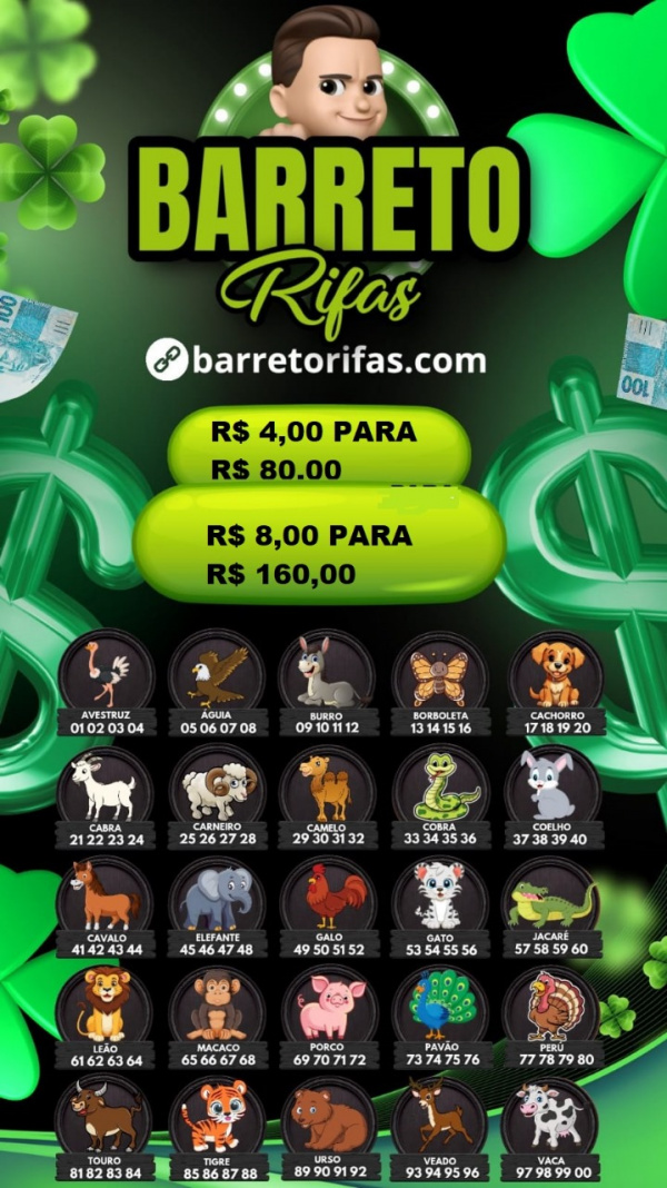 RIFA FAZENDINHA - R$ 4,00 PARA R$ 80,00 OU R$ 8,00 PARA R$ 160,00 RIFA PARA 10HS EXTRAÇÃO BAHIA - VAI LÁ PEGA O SEU GRUPO OU METADE DO GRUPO, SEJA O PRÓXIMO GANHADOR. @barretorifasof