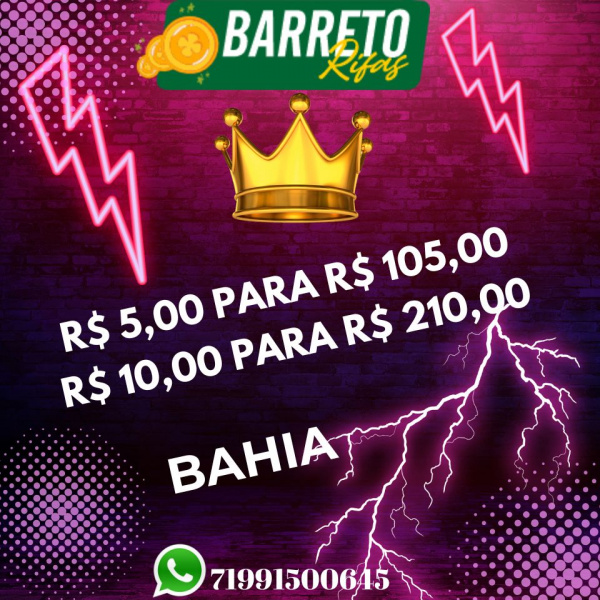RIFA FAZENDINHA - R$ 5,00 PARA R$ 105,00 OU R$ 10,00 PARA R$ 210,00 RIFA PARA 10HS EXTRAÇÃO BAHIA - VAI LÁ PEGA SEU GRUPO OU METADE DO GRUPO, SEJA O PRÓXIMO GANHADOR. @barretorifasof