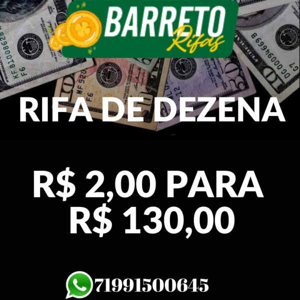 Rifa de dezena R$ 2,00 para R$ 130,00 - Extração Bahia - 19:00 VAI LÁ PEGA SUA DEZENA, VENHA PRO JOGO, BOA SORTE, SEJA O PRÓXIMO GANHADOR. @barretorifasof